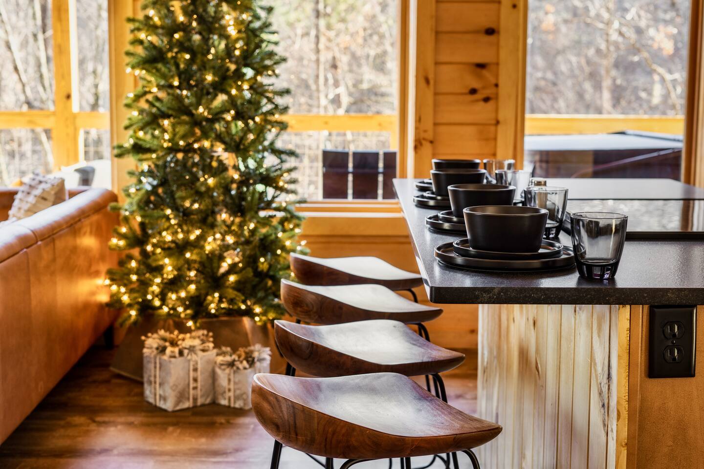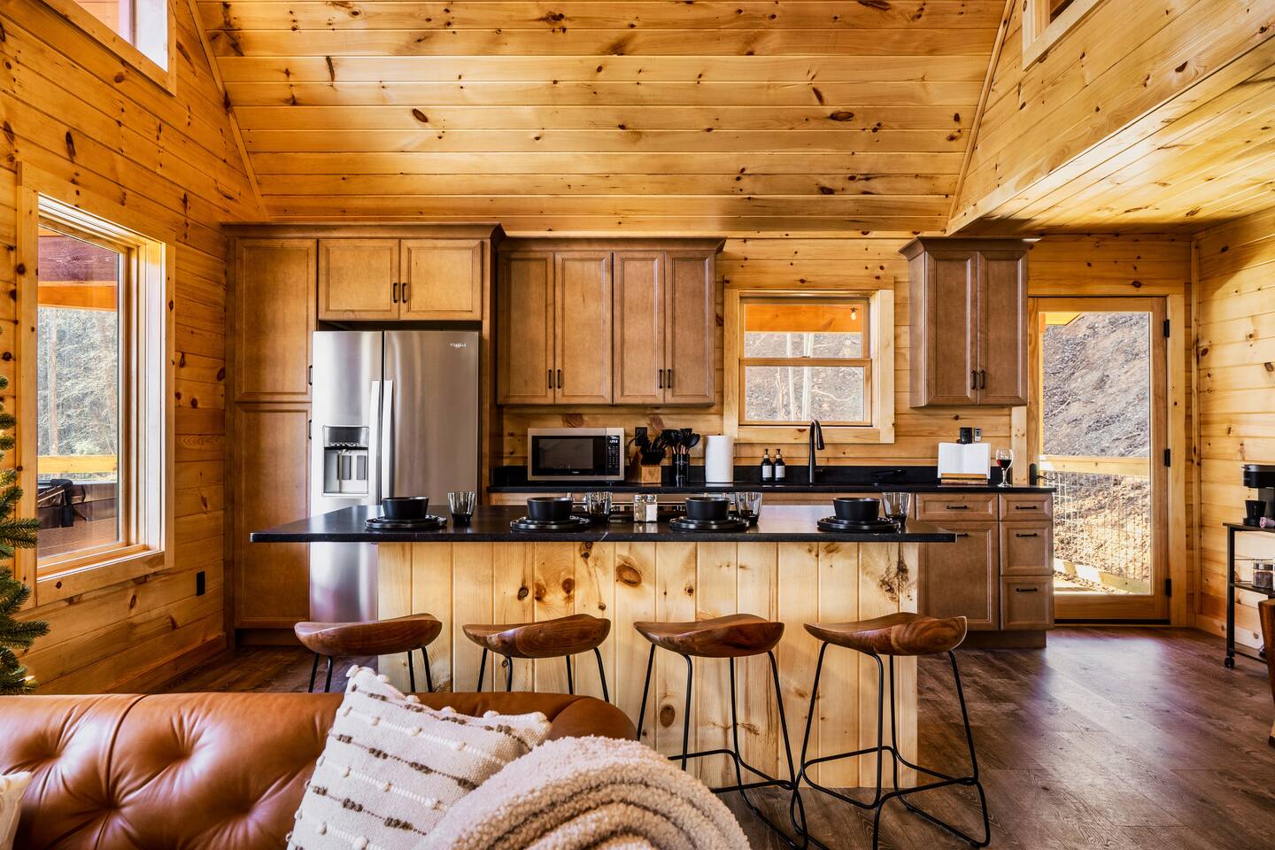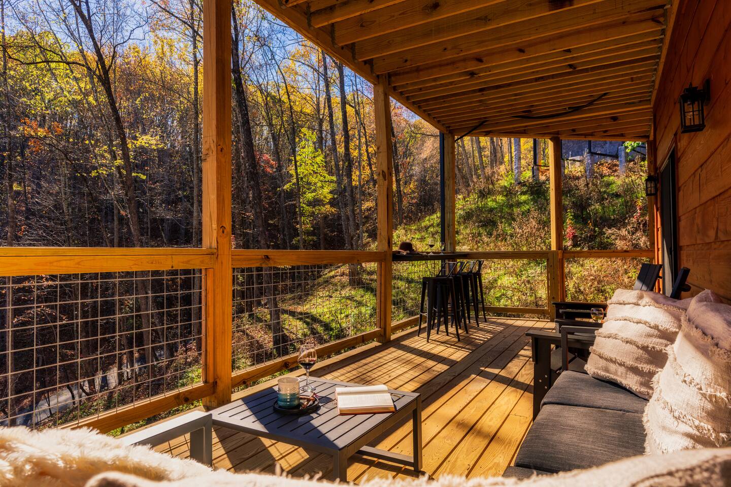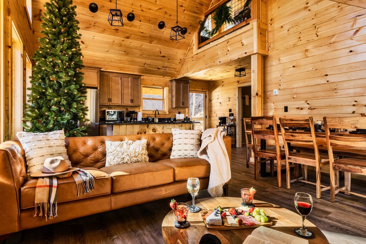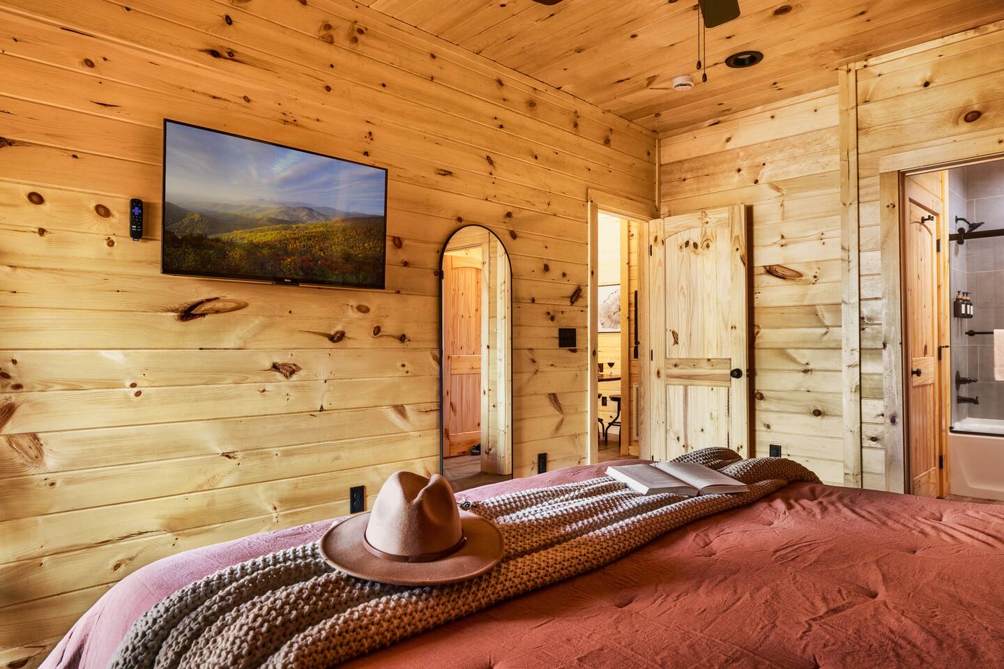 Escape to Peaceful Pines. This serene sanctuary is the ultimate family mountain getaway. A brand new 3 level 3 king en-suit cabin offers a cozy feel with a modern twist. This family-friendly cabin gives an idyllic retreat where laughter and togetherness fill the air, making it the perfect destination to reconnect and create cherished moments with your loved ones. Enjoy the Smoky Mountains with your loved ones in this beautiful relaxing home that includes: * Peaceful seclusion close to major attractions * Private hot tub * Well equipped kitchen with brand new stainless steel appliances * Game room with shuffleboard and 4-person multi-cade with 4,500+ games * 3 indoor fire places * Outdoor fire place * Outdoor dining table * High speed internet * Washer and dryer * Basic cable with Peacock Premium included * 5 smart TVs - bring your own passwords * Two covered decks * Outdoor Grill * Custom full over full bunk bed with twin trundle * Game table for board games and cards Main Floor: * Open concept kitchen and living room with Smart TV and electric fireplace * Large kitchen - well equipped with everything you need including oven with air fryer, Ninja Kitchen System blender, Keurig, and Mr. Coffee drip coffee pot * Dining table for 8 along with bar seating for 4. * King bedroom with en-suite bathroom, smart TV and fire place * Access to main level deck with outdoor seating * Main level deck has a fire place and plenty of seating areas * Outdoor dining with festive lighting * Private 5 person hot tub * Custom bar top with seating for 4 Lower Level: * King bedroom with en-suite bathroom and smart TV * Game room - - Four-person multi-cade with 4,500+ games: Golden Tee, Super Mario Brothers, Galaga, Ms. Pacman, Frogger, Street Fighter, and many more - Shuffleboard table - 75" smart TV - Game table with seating for 4 for those family Euchre games or never ending Monopoly games - Retro style mini fridge * Full size Washer and Dryer * Access to lower deck with custom 4 person bar top with outdoor seating including a sectional Upper Level: * Cozy loft for reading your favorite book, enjoying a cup of coffee, or a quiet space to send a few emails * King bedroom with ensuite bathroom and smart tv * Stylish Sleeper sofa * Custom metal scrabble board Conveniently located to major area attractions *Located in the Great Smoky Arts & Crafts Community - the largest independent organization of artisans in the United States (1.8 Miles) *Downtown Gatlinburg - (4.2 Miles) *Great Smokey Mountain National Park - (5.1 Miles) *The Island in Pigeon Forge - (11.3 Miles) * Dollywood - (11.9 Miles) * Cades Cove - (36.3 Miles)