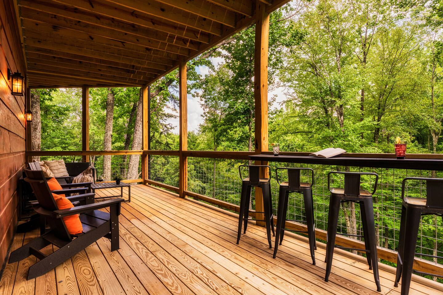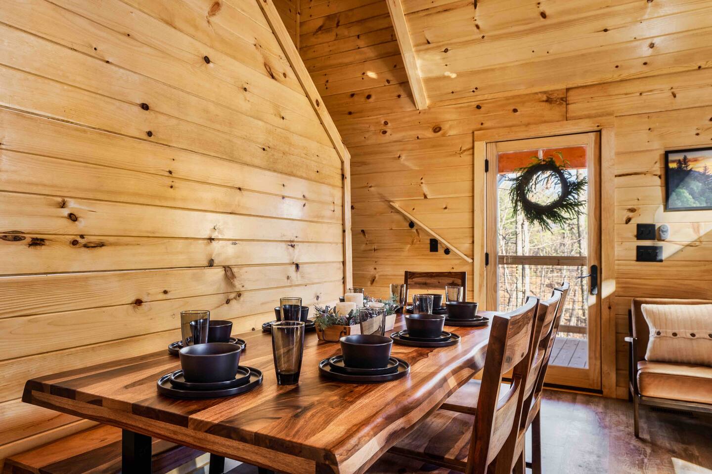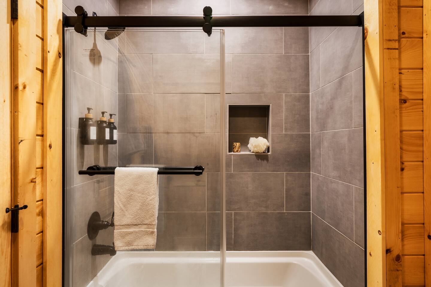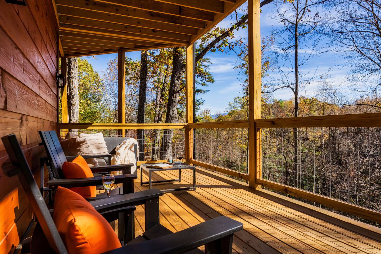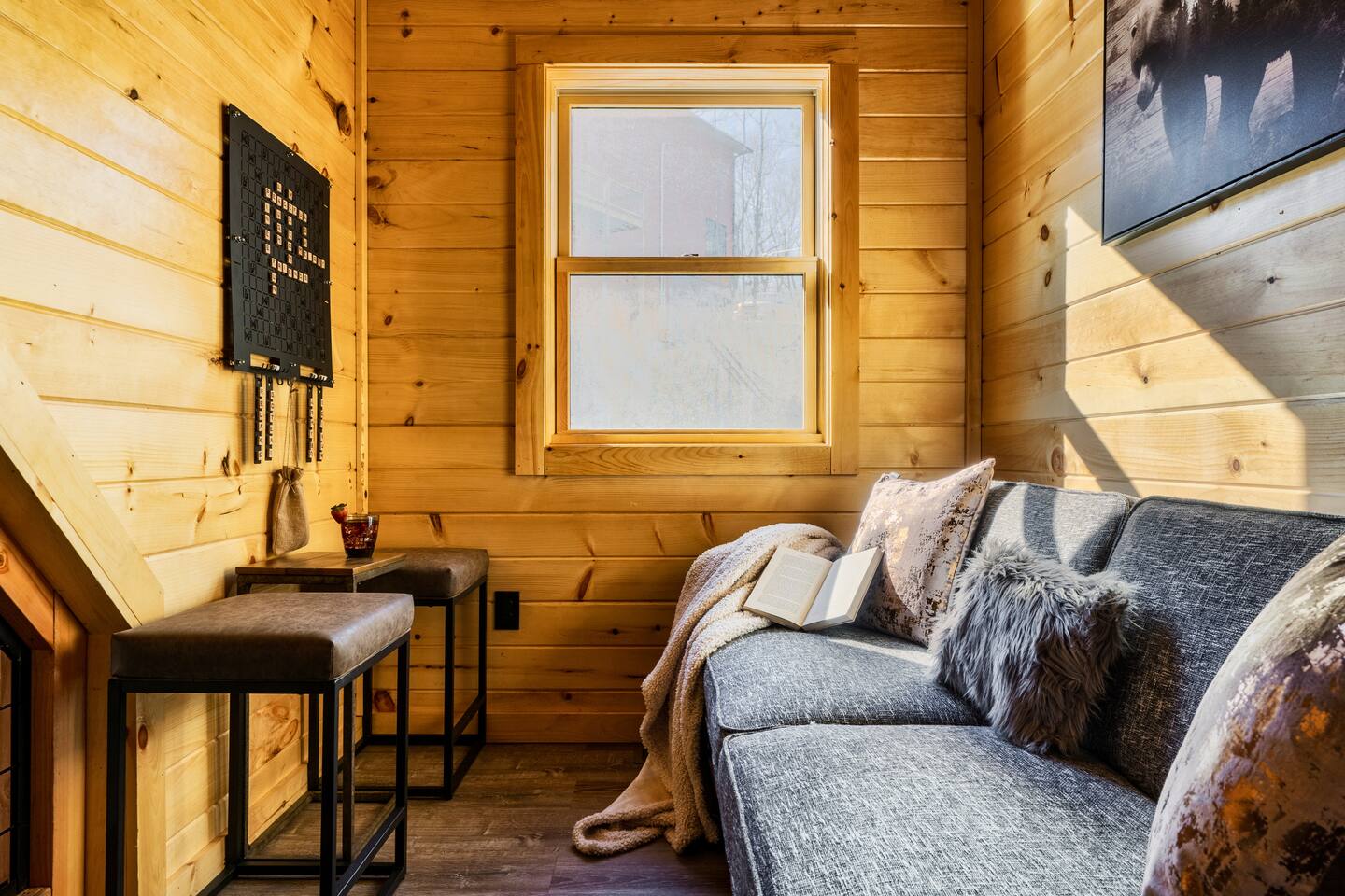 Escape to Peaceful Pines. This serene sanctuary is the ultimate family mountain getaway. A brand new 3 level 3 king en-suit cabin offers a cozy feel with a modern twist. This family-friendly cabin gives an idyllic retreat where laughter and togetherness fill the air, making it the perfect destination to reconnect and create cherished moments with your loved ones. Enjoy the Smoky Mountains with your loved ones in this beautiful relaxing home that includes: * Peaceful seclusion close to major attractions * Private hot tub * Well equipped kitchen with brand new stainless steel appliances * Game room with shuffleboard and 4-person multi-cade with 4,500+ games * 3 indoor fire places * Outdoor fire place * Outdoor dining table * High speed internet * Washer and dryer * Basic cable with Peacock Premium included * 5 smart TVs - bring your own passwords * Two covered decks * Outdoor Grill * Custom full over full bunk bed with twin trundle * Game table for board games and cards Main Floor: * Open concept kitchen and living room with Smart TV and electric fireplace * Large kitchen - well equipped with everything you need including oven with air fryer, Ninja Kitchen System blender, Keurig, and Mr. Coffee drip coffee pot * Dining table for 8 along with bar seating for 4. * King bedroom with en-suite bathroom, smart TV and fire place * Access to main level deck with outdoor seating * Main level deck has a fire place and plenty of seating areas * Outdoor dining with festive lighting * Private 5 person hot tub * Custom bar top with seating for 4 Lower Level: * King bedroom with en-suite bathroom and smart TV * Game room - - Four-person multi-cade with 4,500+ games: Golden Tee, Super Mario Brothers, Galaga, Ms. Pacman, Frogger, Street Fighter, and many more - Shuffleboard table - 75" smart TV - Game table with seating for 4 for those family Euchre games or never ending Monopoly games - Retro style mini fridge * Full size Washer and Dryer * Access to lower deck with custom 4 person bar top with outdoor seating including a sectional Upper Level: * Cozy loft for reading your favorite book, enjoying a cup of coffee, or a quiet space to send a few emails * King bedroom with ensuite bathroom and smart tv * Stylish Sleeper sofa * Custom metal scrabble board Conveniently located to major area attractions *Located in the Great Smoky Arts & Crafts Community - the largest independent organization of artisans in the United States (1.8 Miles) *Downtown Gatlinburg - (4.2 Miles) *Great Smokey Mountain National Park - (5.1 Miles) *The Island in Pigeon Forge - (11.3 Miles) * Dollywood - (11.9 Miles) * Cades Cove - (36.3 Miles)