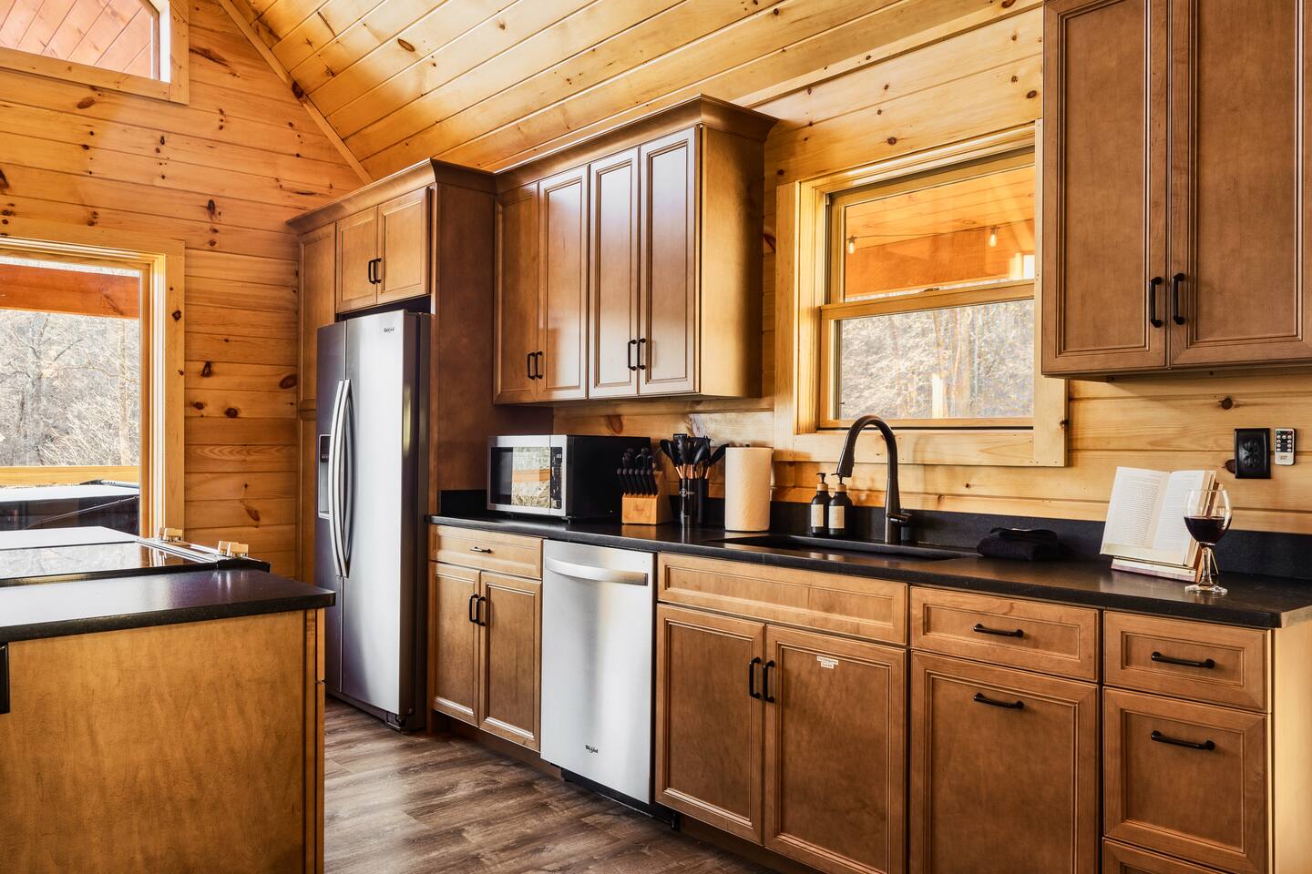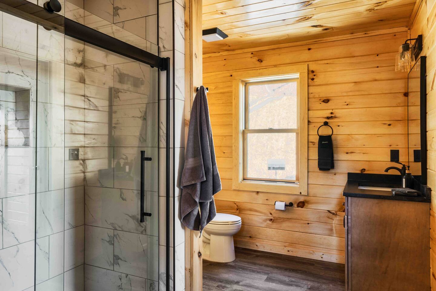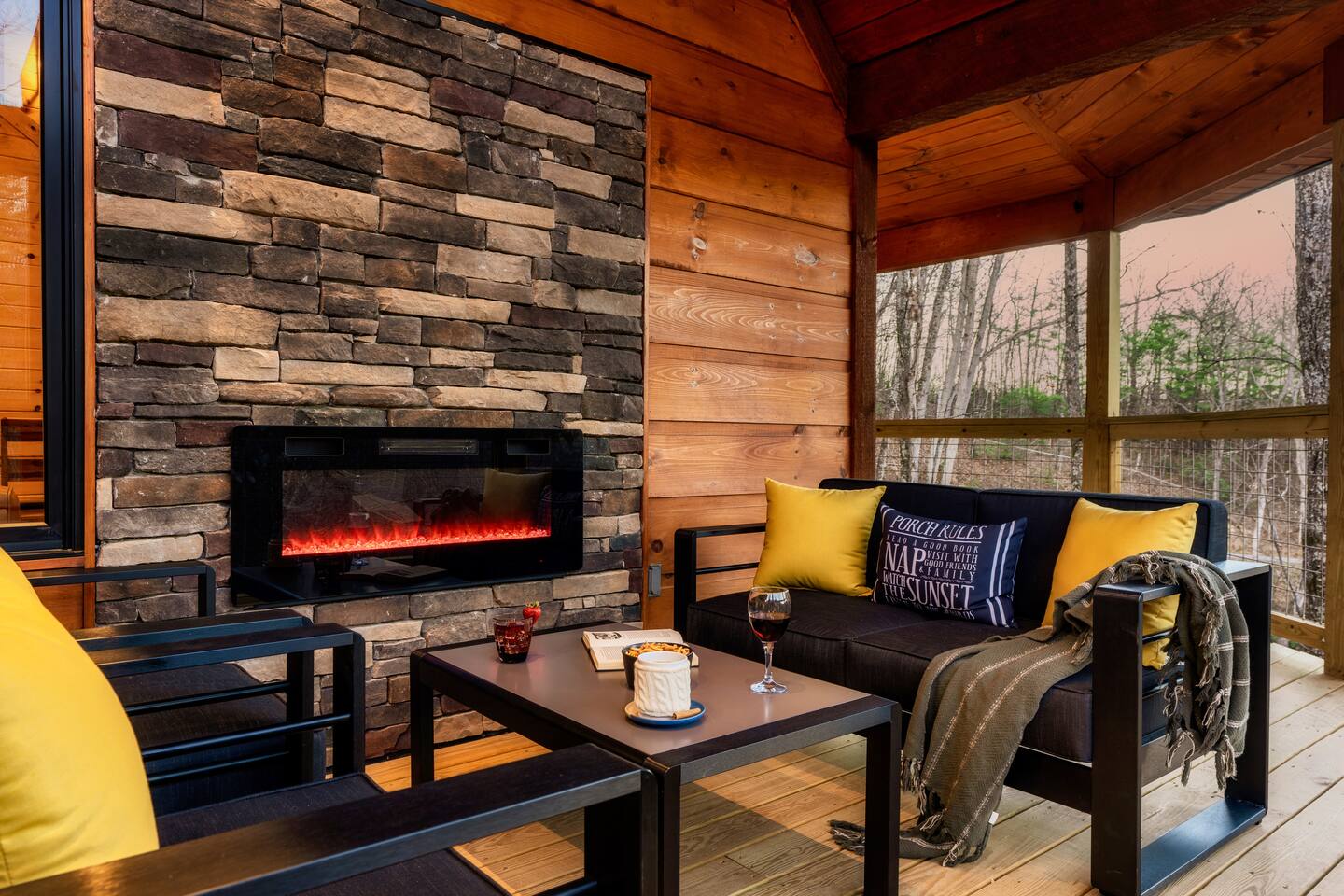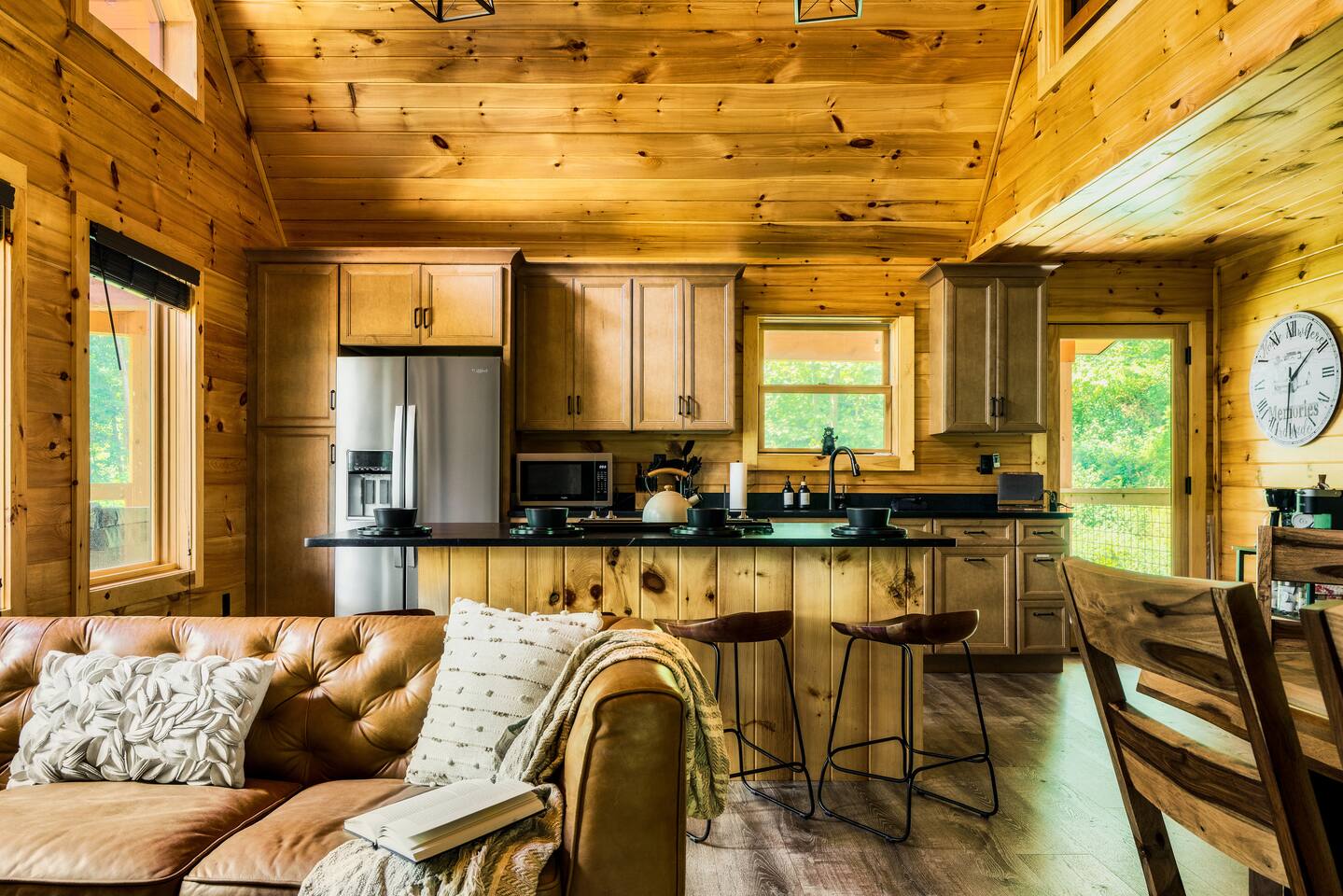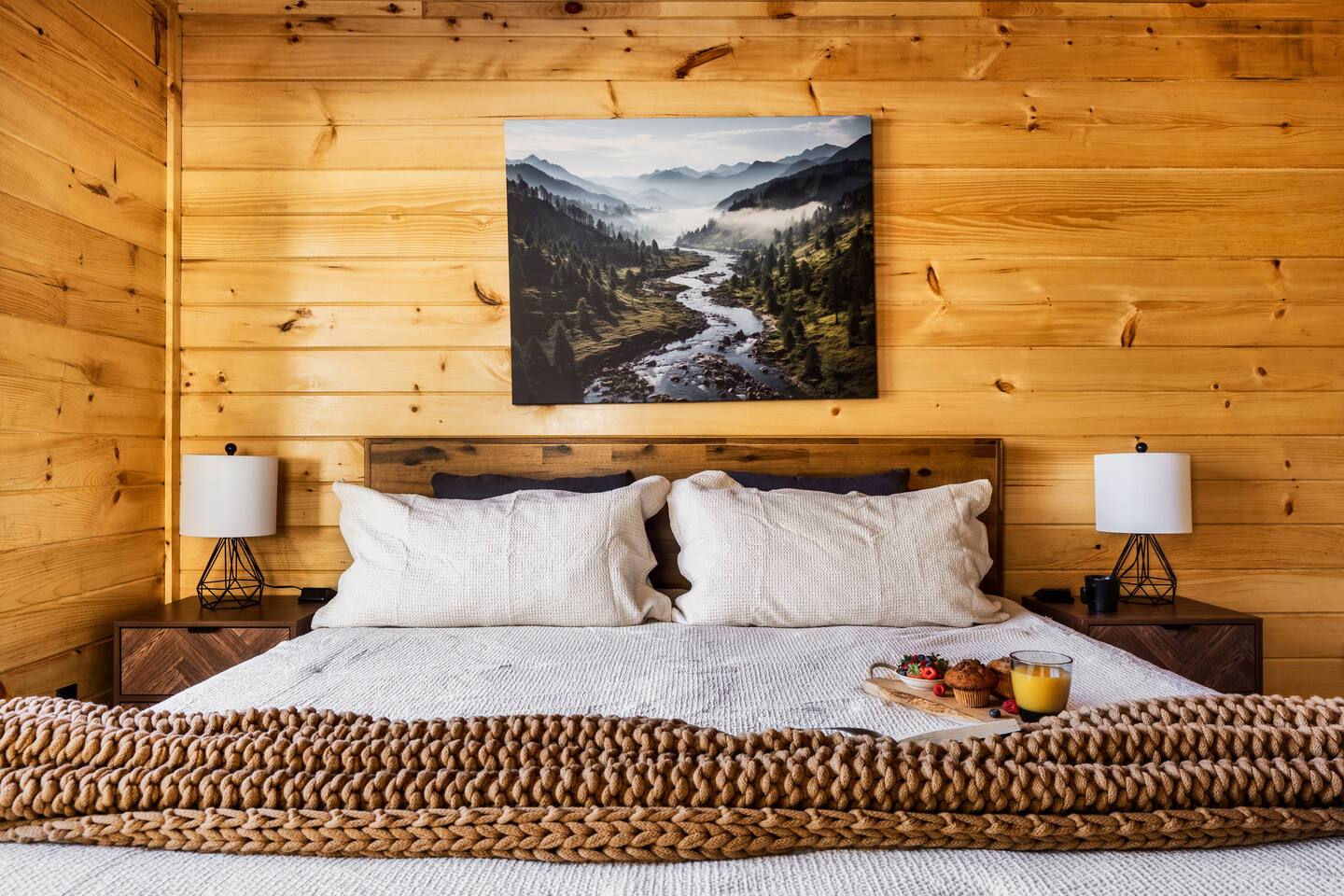 Escape to Peaceful Pines. This serene sanctuary is the ultimate family mountain getaway. A brand new 3 level 3 king en-suit cabin offers a cozy feel with a modern twist. This family-friendly cabin gives an idyllic retreat where laughter and togetherness fill the air, making it the perfect destination to reconnect and create cherished moments with your loved ones. Enjoy the Smoky Mountains with your loved ones in this beautiful relaxing home that includes: * Peaceful seclusion close to major attractions * Private hot tub * Well equipped kitchen with brand new stainless steel appliances * Game room with shuffleboard and 4-person multi-cade with 4,500+ games * 3 indoor fire places * Outdoor fire place * Outdoor dining table * High speed internet * Washer and dryer * Basic cable with Peacock Premium included * 5 smart TVs - bring your own passwords * Two covered decks * Outdoor Grill * Custom full over full bunk bed with twin trundle * Game table for board games and cards Main Floor: * Open concept kitchen and living room with Smart TV and electric fireplace * Large kitchen - well equipped with everything you need including oven with air fryer, Ninja Kitchen System blender, Keurig, and Mr. Coffee drip coffee pot * Dining table for 8 along with bar seating for 4. * King bedroom with en-suite bathroom, smart TV and fire place * Access to main level deck with outdoor seating * Main level deck has a fire place and plenty of seating areas * Outdoor dining with festive lighting * Private 5 person hot tub * Custom bar top with seating for 4 Lower Level: * King bedroom with en-suite bathroom and smart TV * Game room - - Four-person multi-cade with 4,500+ games: Golden Tee, Super Mario Brothers, Galaga, Ms. Pacman, Frogger, Street Fighter, and many more - Shuffleboard table - 75" smart TV - Game table with seating for 4 for those family Euchre games or never ending Monopoly games - Retro style mini fridge * Full size Washer and Dryer * Access to lower deck with custom 4 person bar top with outdoor seating including a sectional Upper Level: * Cozy loft for reading your favorite book, enjoying a cup of coffee, or a quiet space to send a few emails * King bedroom with ensuite bathroom and smart tv * Stylish Sleeper sofa * Custom metal scrabble board Conveniently located to major area attractions *Located in the Great Smoky Arts & Crafts Community - the largest independent organization of artisans in the United States (1.8 Miles) *Downtown Gatlinburg - (4.2 Miles) *Great Smokey Mountain National Park - (5.1 Miles) *The Island in Pigeon Forge - (11.3 Miles) * Dollywood - (11.9 Miles) * Cades Cove - (36.3 Miles)