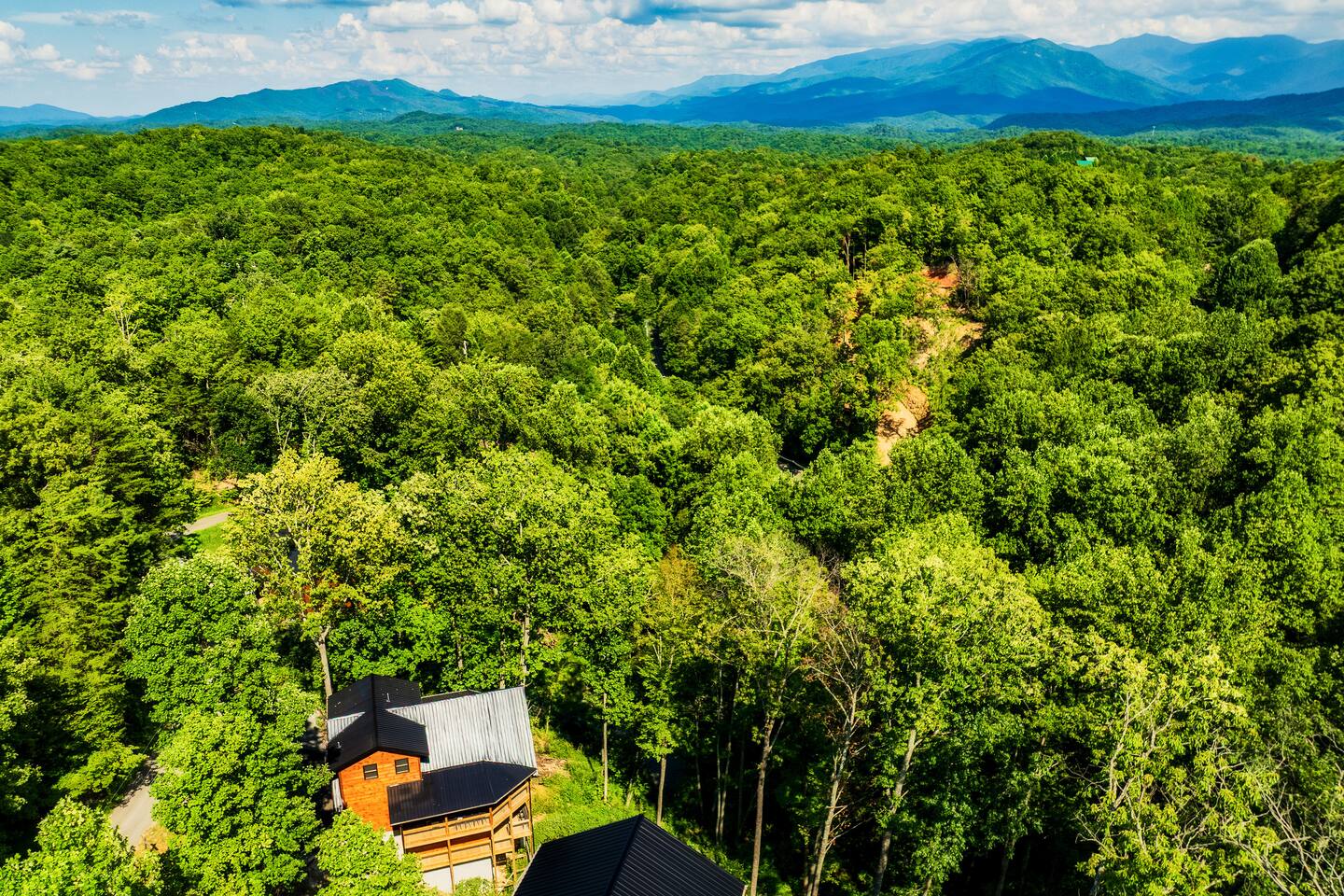 Nestled high on a mountain, this cabin's neighborhood offers the best of both worlds. While it enjoys a sense of seclusion, there are houses scattered nearby. Though these homes are not too close, they create a reassuring presence within sight. This allows for a sense of community while still maintaining privacy. The presence of neighboring houses adds a touch of comfort and security, reminding guests that they are not entirely isolated. Guests can relish in the breathtaking views of nature while occasionally glimpsing the beautiful homes that dot the mountainside.